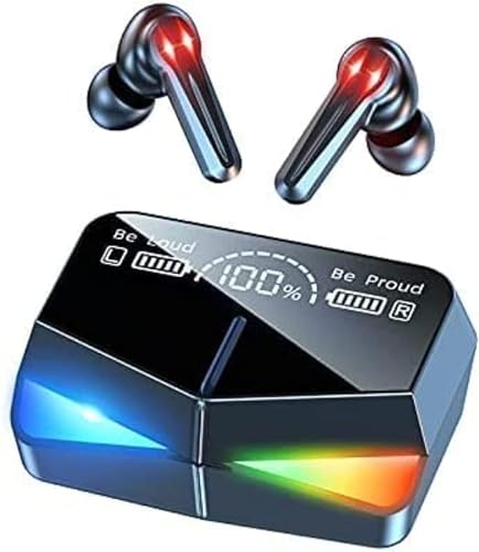 Generic - سماعات بلوتوث لاسلكية M28 BT5.1 بشاشة LED مع ميكروفون بخاصية عزل الضوضاء، داخل الأذن، أسود