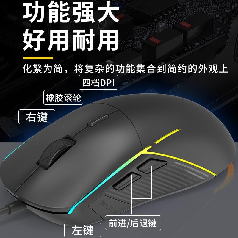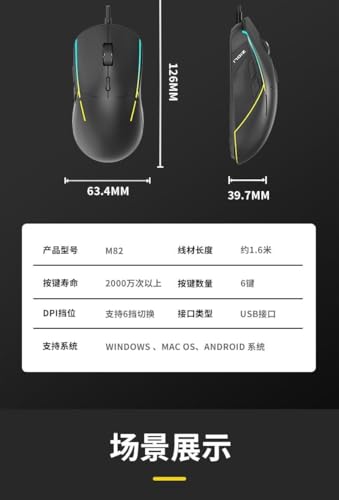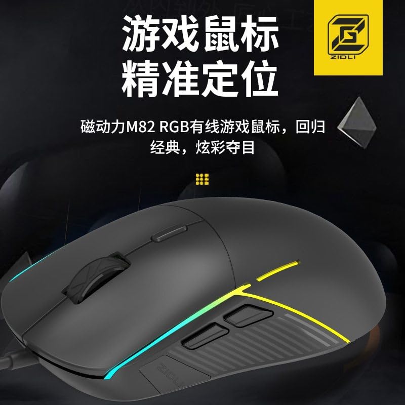 Generic - ماوس العاب زيدلي - M82 سلكي - RGB -16000 نقطة لكل انش وتصميم مريح - كابل طوله 1.6 متر، مع اتصال USB عالي الجودة.