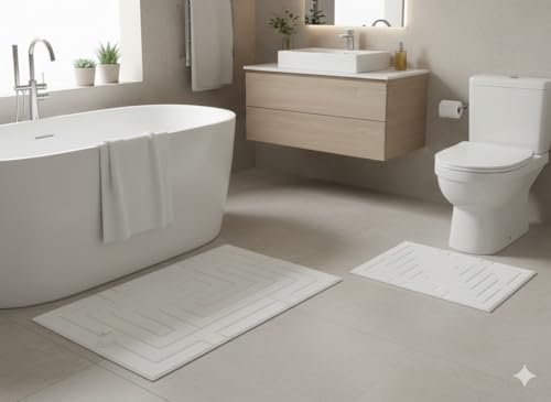 Generic - طقم حمام دواسة حمام MACO تركي مضاد للمياه بيج (ابيض متاهه)