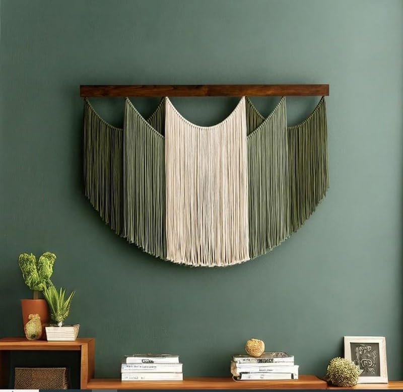 Home Gallery - خيوط مكرمية للتعليق على الحائط، صنع يدوي، أخضر