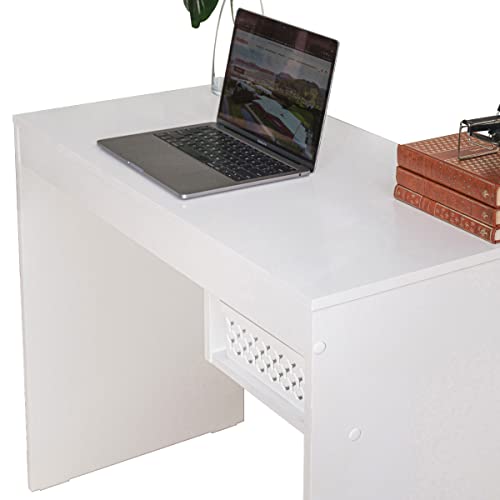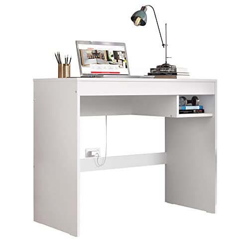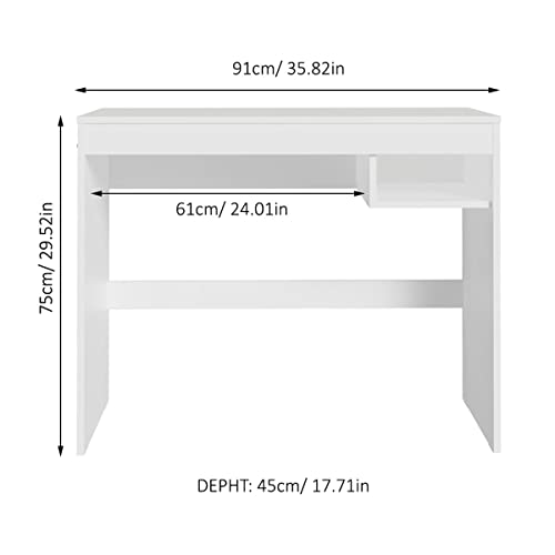 Madesa - مكتب صغير مقاس 91 سم من ماديسا، مكتب كمبيوتر لمحطات العمل، يتميز بمساحة تخزين (أبيض)