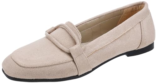 MADYOS - حذاء باليه فلات بمقدمة مغلقة بكعب 1 سم ونعل مطاط للنساء من ماديوس، لون بيج، مقاس 39، موديل R16-06
