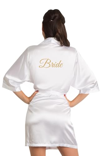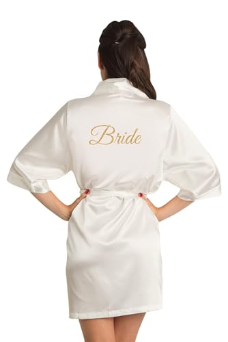 MAISHA CREATION - روب عروس قصير من الساتان الحريري للنساء من ميشا كرييشن | فائق النعومة ومريح، ملابس نوم أنيقة بأكمام طويلة ورباط دانتيل للعروس ووصيفة العروس