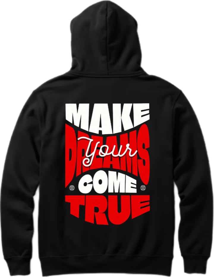 Generic - سترة بقلنسوة بظهر خلفي مطبوع بعبارة «Make Your DREAMS COME TRUE