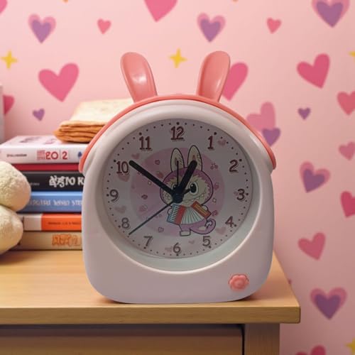 - ساعة منبه للمكتب بتصميم كرتوني لطيف على شكل نحلة مع حامل للقلم، تصميم للبنات والأولاد وديكور غرفة الأطفال من ماكى ستور (متعددة الألوان، 14 × 13 × 4 سم) (زهري)، بلاستيك، تناظري