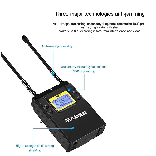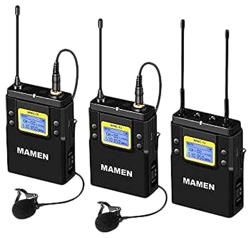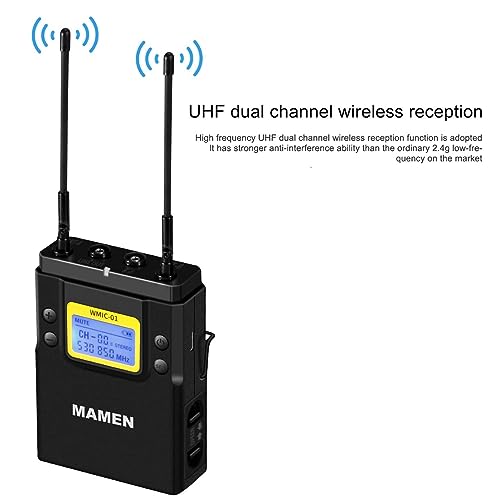 Aabsom - طقم ميكروفون لاسلكي بنطاق موجات يو اتش اف مع جهازي إرسال من مامين،WMIC-01، هايبر كارديويد، أزرق