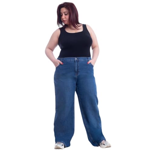 Mamilly Jeans - Mamilly Jeans بنطلون جينز مقاسات خاصه هاي ويست استريت بارجل واسعة نسائي