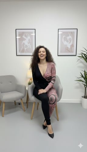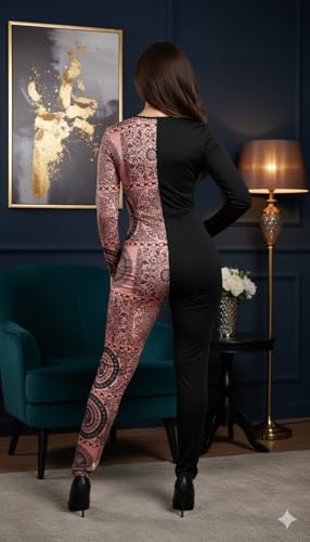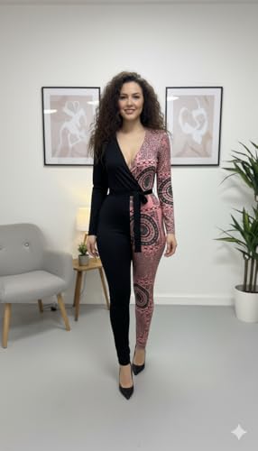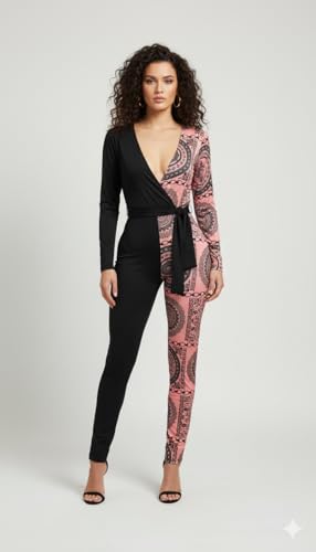 Generic - سالوبيت للنساء بلونين ورقبة V عميقة وأكمام طويلة ونمط دانتيل أسود وذهبي وردي، ملابس سهرة من مانيكان