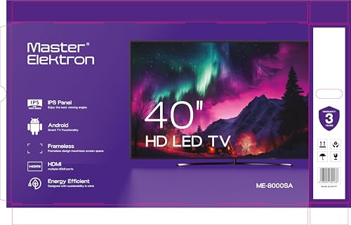 Master Elektron - تلفزيون ذكي بشاشة LED مقاس 40 بوصة من ماستر الكترون بنظام اندرويد بدون اطار اي بي اس - اندرويد 14 - بدون اطار - موفر للطاقة