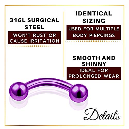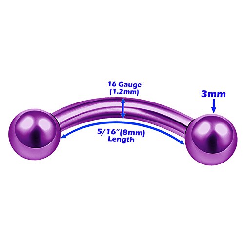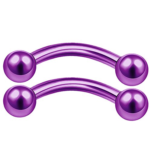 MATIGA - 2 قطعة مؤكسد ارجواني قياس 16 5/16 8 ملم قضيب قضيب منحني للثقب مجوهرات لابريت الشفاه والايث الحاجب هيليكس 3 ملم الكرة M0413
