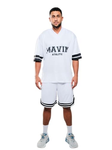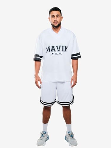 MAVIN - قميص جيرسي رياضي من مافين للجنسين، بقصة فضفاضة، بكم قصير، مصنوع من الجيرسي، باللون الأبيض، مقاس كبير