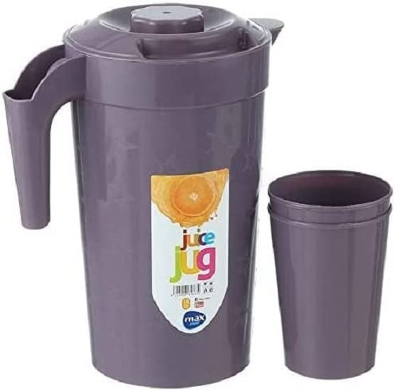 Max Plast - طقم شفشق عصير بلاستيك مع أكواب من ماكس بلاست، سعة 6 لتر - ألوان متنوعة