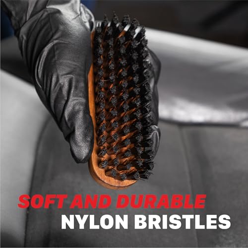 - فرشاة بشعيرات نايلون متينة: مصنوعة من شعيرات نايلون ومقبض جلدي لتنظيف وتلميع الأجزاء الداخلية والخارجية للسيارة.