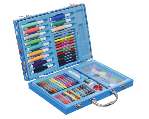 Generic - شنطة اقلام الوان مايه / خشب / فلوماستر / شمع 67 قطعة