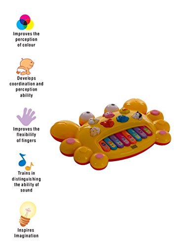 • تتميز مفاتيح البيانو بنوتات موسيقية تفعل ما يمكن للطفل استخدامه لتأليف أغاني جديدة، كما أن هذه المفاتيح تلعب أغاني الأطفال الشائعة وأغاني المزرعة عند تغيير الوضع.