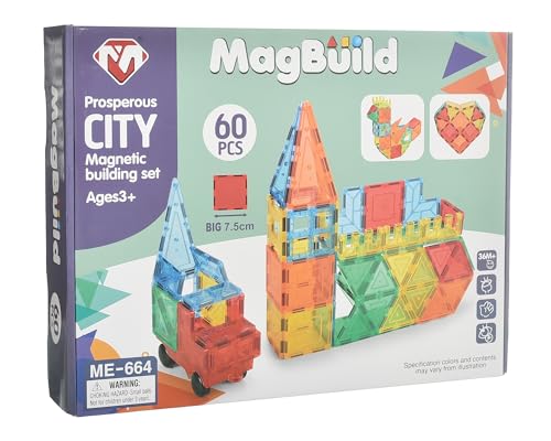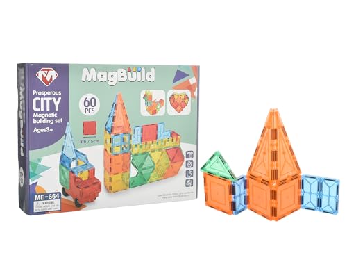 Megahertz - ألعاب بناء مغناطيسية ماج بيلد سيتي للأطفال بعمر 3 سنوات فما فوق من ميجاهيرتز، مجموعة مكونة من 60 قطعة - متعددة الألوان