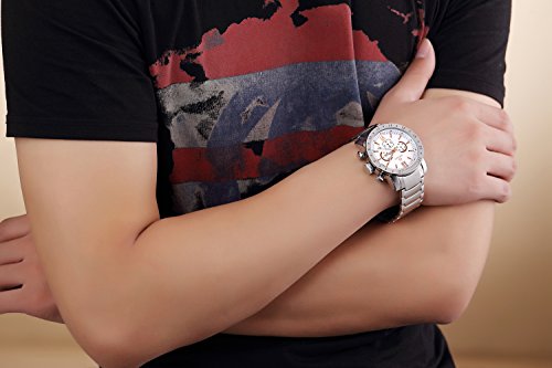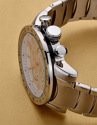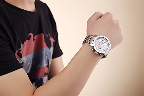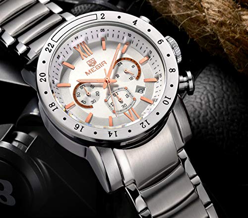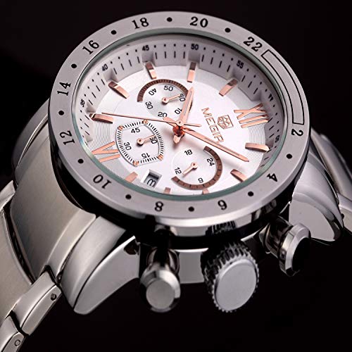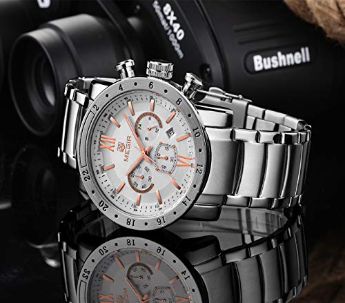Megir - ميجير ساعة يد رجالية بسوار معدني، انالوج بعقارب، MS3008G-7، بمينا أبيض