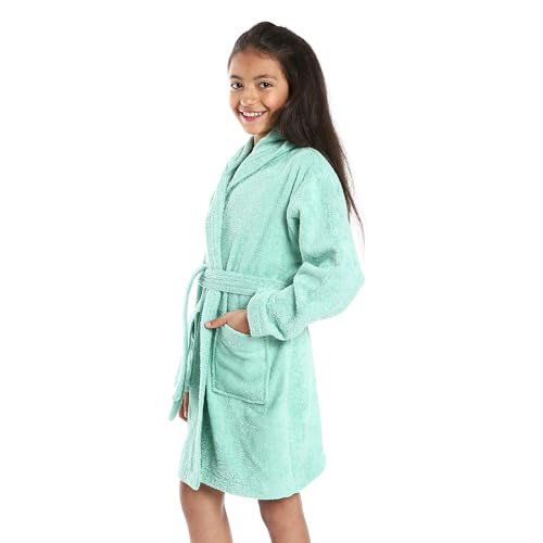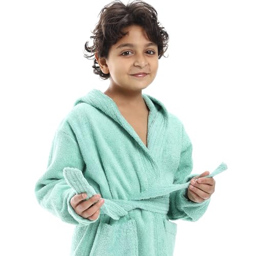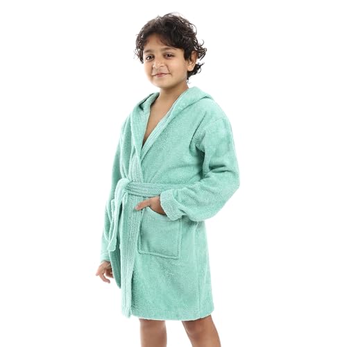 Mehalla - روب حمام بيسيك بغطاء رأس للأطفال من ميهالا، 6-7 سنوات، أخضر مينت