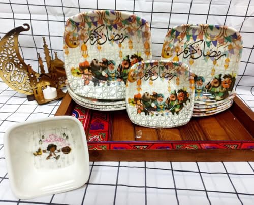- ابو كف رقيق وصغير أشكال مختلفة منو يعني زي شكل خيامي و عربية الفول و هلال رمضان عامله قلبان في زوم رمضان الطقم اللي مجنن الناس طقم عشاء ميلامين 24 قطعه باشكال رمضان للإحساس ببهجة رمضان وإدخال الفرحه والسرور على أسرتك مكون من 24 قطعه كالتالي اطباق كبير اطباق وسط اطباق صغير بولات شوربه متوفر برسومات رمضانيه اجمل من بعض