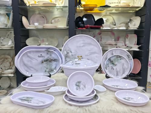 Generic - طقم أواني ميلامين ، 38 قطعة، أبيض مع تصميم رخامي