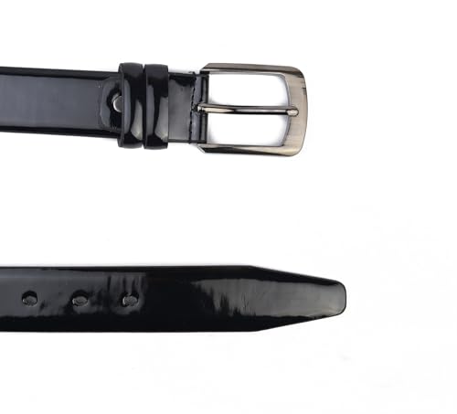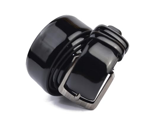 Generic - حزام رجالي - جلد صناعي عالي الجودة لامع - حزام مقاوم للتشقق، أسود
