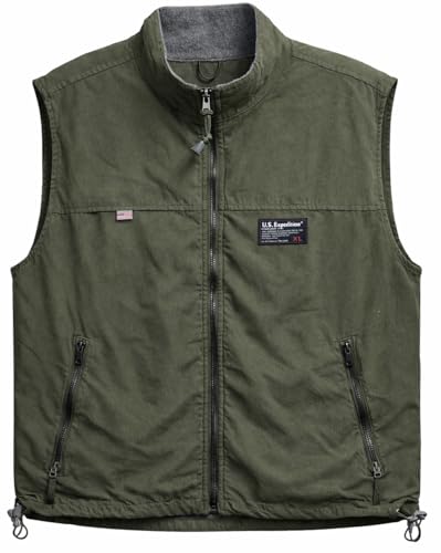 Generic - فيست بوجهين للرجال، اخضر زيتوني، مقاس 2XL