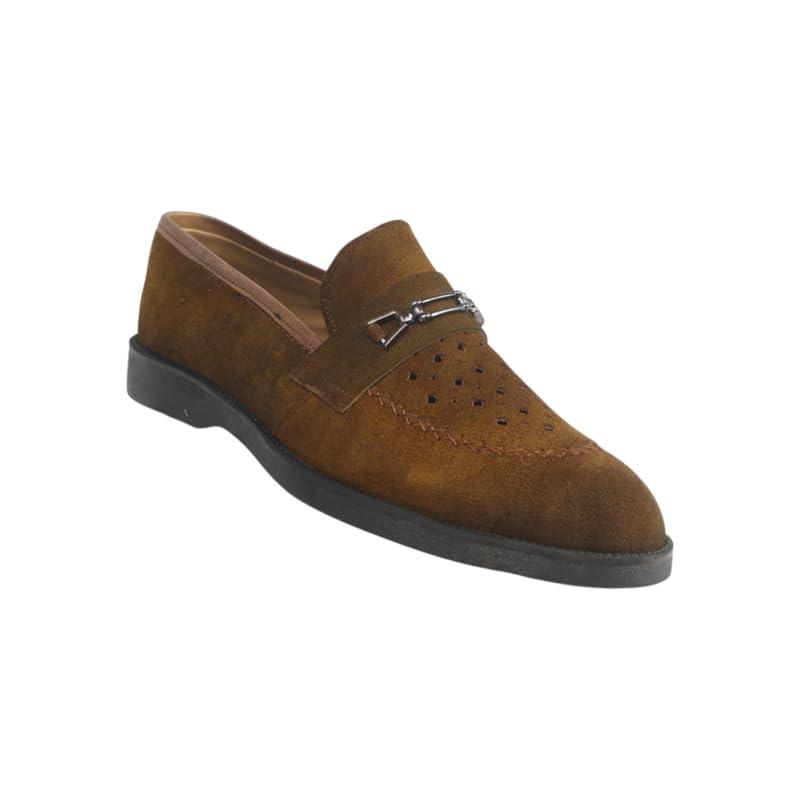 Generic - حذاء شمواه مسطح بسطح مخرم مصنوع من الجلد الطبيعي للرجال موديل 547
