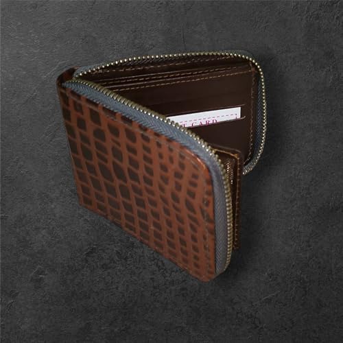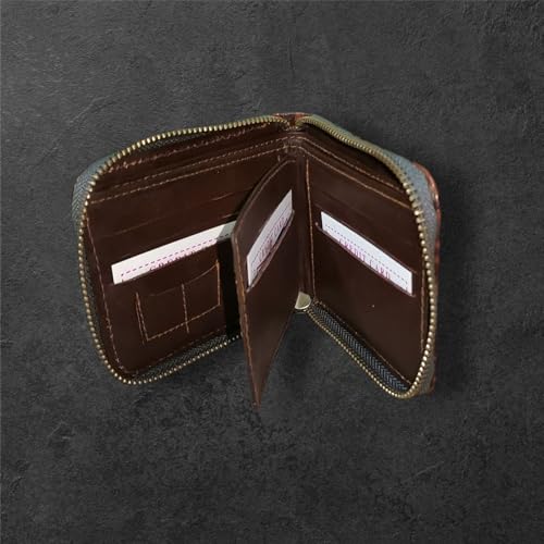 Generic - محفظة رجالية بسحاب من جلد طبيعي فاخر – تصميم كلاسيكي أنيق – متعددة الجيوب للبطاقات والنقود – بني داكن