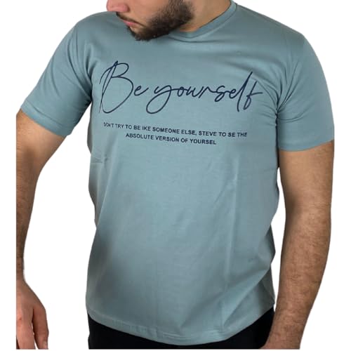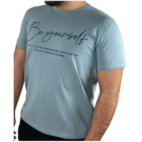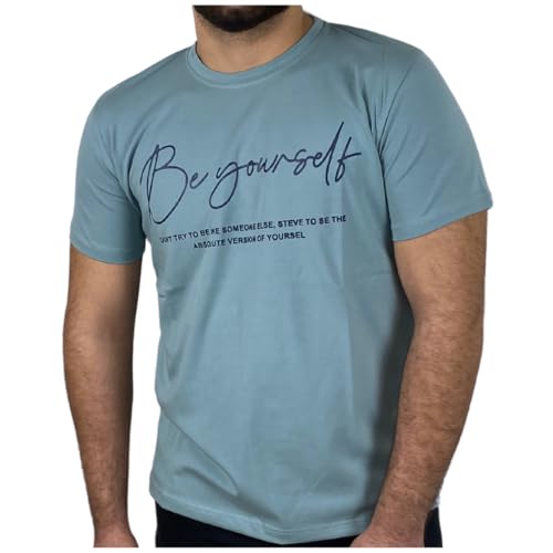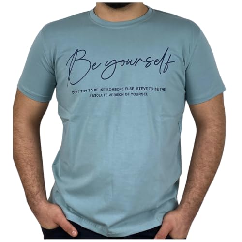 ISTANBUL MODEL - تيشرت بقصة عادية ورقبة دائرية وأكمام قصيرة بطبعة "Be Yourself" مصنوع من 95% قطن و5% سباندكس للرجال