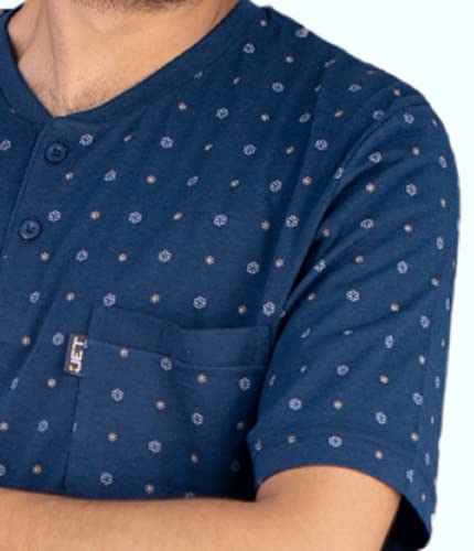 Jet (JET ) - Men Summer Pajama Set Printed Top & Plain Bottom - Blue