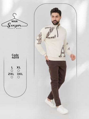 Senyora Khawatmi - بيجامة رجالي مكونّة من قطعتين بنطلون وجاكيت بأكمام وسوستة ترنج شتوي كاجوال للخروج وللنوادي وللمنزل (NO:4019)