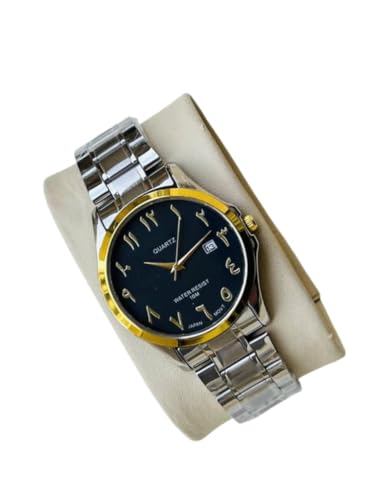 Generic - ساعة يد كوارتز رجالية،، إطار ذهبي، سوار معدن، مينا أسود مع أرقام عربية