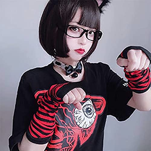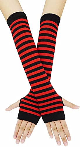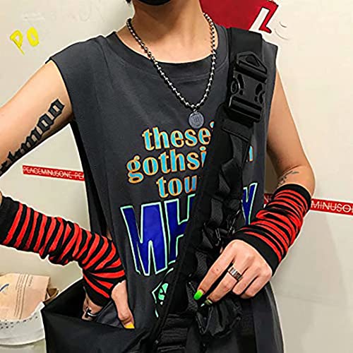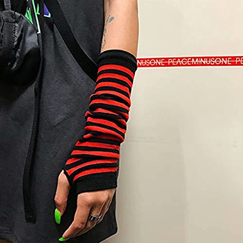 Mesyo - ميسيو قفازات قوطية بدون اصابع لتدفئة الذراع الطويلة، قفازات محبوكة بفتحة الابهام قابلة للتمدد