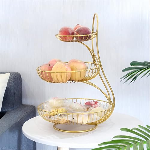 Generic - سلة معدنية - حامل فاكهة أنيق من ثلاث طبقات للمطبخ أو غرفة المعيشة، تصميم من سلوك كريمية اللون، مثالي لتخزين الفواكه والخبز وغيرها