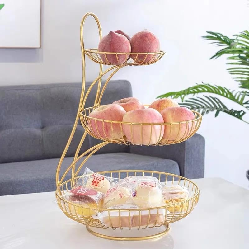 - تتميز سلة الفاكهة بتصميم مفتوح بثلاث طبقات بأحجام مختلفة، مما يوفر مساحة واسعة لمجموعة متنوعة من الوجبات الخفيفة للفواكه. يسمح الهيكل الدائري المفتوح بسهولة الرؤية والتنظيم، ويبلغ ارتفاع السلة 47 سم.