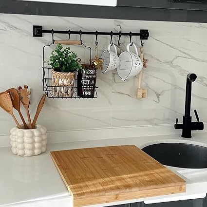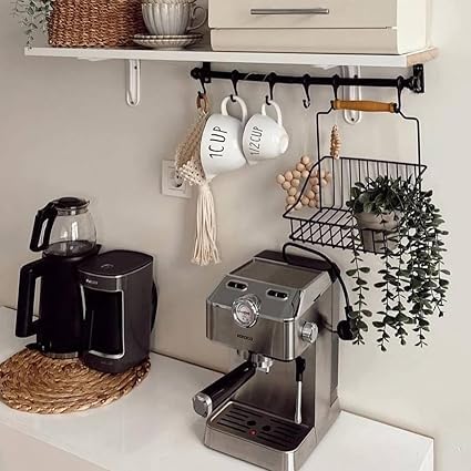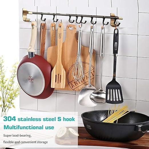 Generic - رف مطبخ معدني جداري مع خطافات تعليق متعددة لتنظيم المعالق وأدوات المطبخ وتوفير المساحة