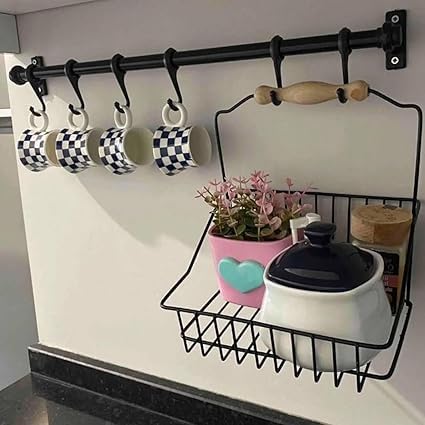 - تصميم عالي الجودة من المعدن يمنح المتانة والقوة. تأتي بـ 5 هوكات متينة مثالية لتعليق الملابس والإكسسوارات. تحتوي على حامل مخصص للصوصات وزجاجات الزيت، مما يساعد في تنظيم المطبخ. طول 60 سم مثالي لتعليق العديد من الأغراض. سهلة التركيب والاستخدام، دون الحاجة لأدوات خاصة.