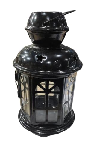 Generic - فانوس رمضان معدن مع شمعه الكترونيه حجم كبير (اسود)