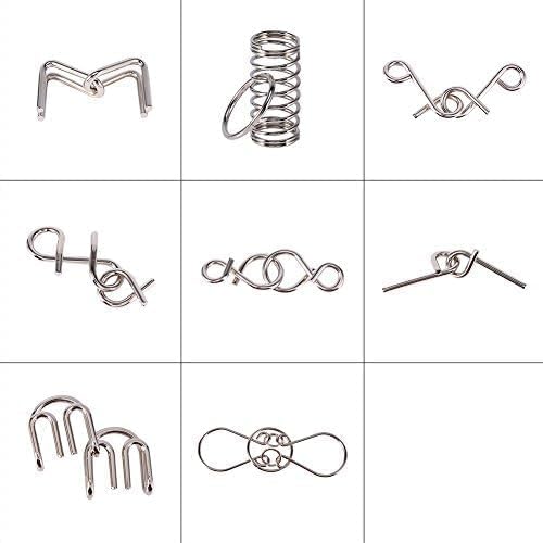 Generic - مجموعة بازل من سلك معدني، 8 قطع مختلفة من ألعاب العقل، فضي