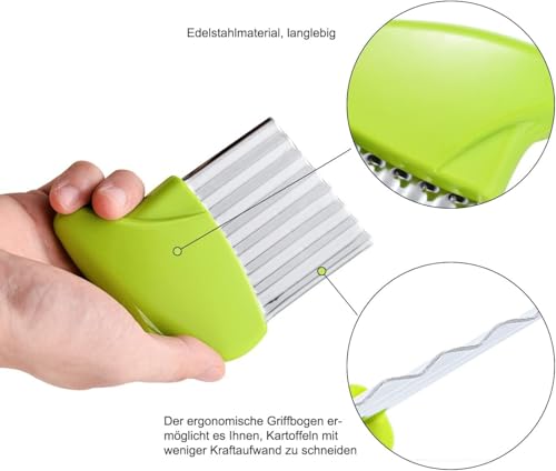 - تصميم مميز يسمح لك بقطع البطاطس بشكل صوابع كرانشي لذيذ يحبه الأطفال.