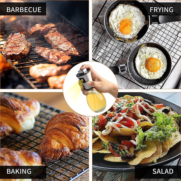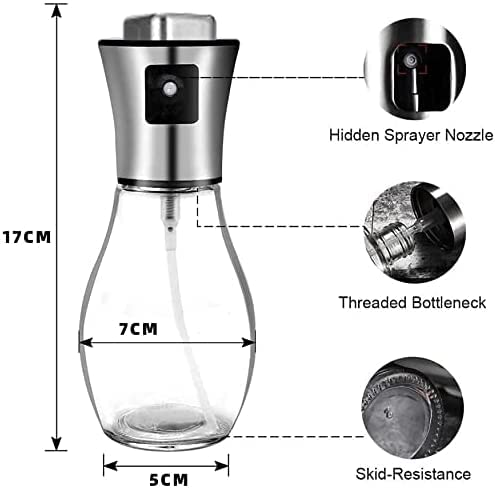 - اسم المنتج: حجم بخاخة الزيت: 200 مل، اللون: شفاف + فضي، المادة: ستانلس ستيل + بلاستيك ايه بي اس + زجاج بوروسيليكات، المقاس: 16.5 × 6.9 سم