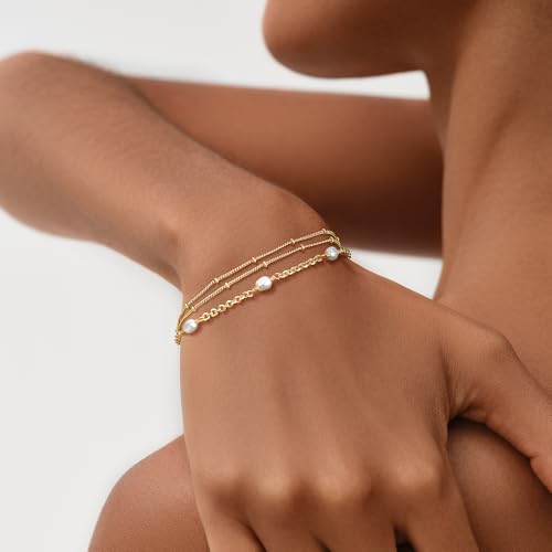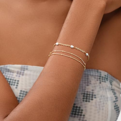 Mevecco - سوار ذهبي من اللؤلؤ الصغير مطلي بالذهب عيار 14 قيراط حلية صغيرة وانيقة ومطرزة بلؤلؤ المياه العذبة مصنوع يدويا للنساء ميفيكو معدن زركونيا مكعب