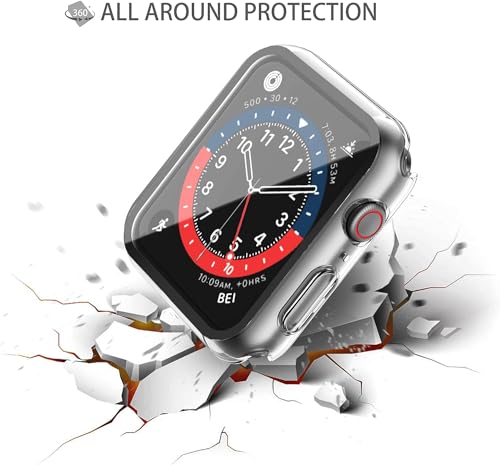 Meyaar - حافظة حماية صلبة من البولي كربونات ميار متوافقة مع ساعة ابل سلسلة 10 9 8 7 الترا 2 شاشة الزجاج المقوى 41 ملم 42 45 46 49 شفاف لسلسلة - .