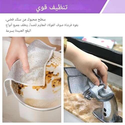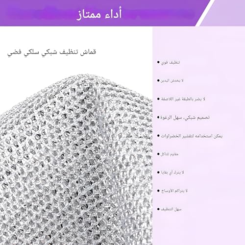 - يتضمن هذا المنتج مجموعة من 5 أقمشة تنظيف سلكية متعددة الوظائف غير قابلة للخدش مصممة لغسل الأطباق والأطباق والأحواض وأسطح المناضد. سهلة الشطف ويمكن غسلها في الغسالة، مما يجعلها خيارًا مناسبًا لمهام التنظيف اليومية.