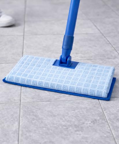 Generic - قطع قماش للتنظيف من المايكروفايبر، نمط شبكي أزرق، وسادات مساحة موب للأرضيات قابلة لإعادة الاستخدام، 48 × 60 سم، 5 قطع
