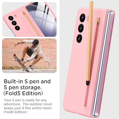 Miimall - جراب حماية متوافق مع سامسونج جالاكسي Z فولد 5 من مي مول يتضمن قلم ستايلس واقي شاشة زجاجي مدمج رفيع مضاد للصدمات بتغطية كاملة البولي كربونات لموبايل زد - وردي