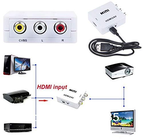 MINI - محول 1080 بي موصل اتش دي ام اي الى فيديو مركب ايه في سي اس اس-فيديو ار ان تي بال عدد المنافذ: 3 أبيض