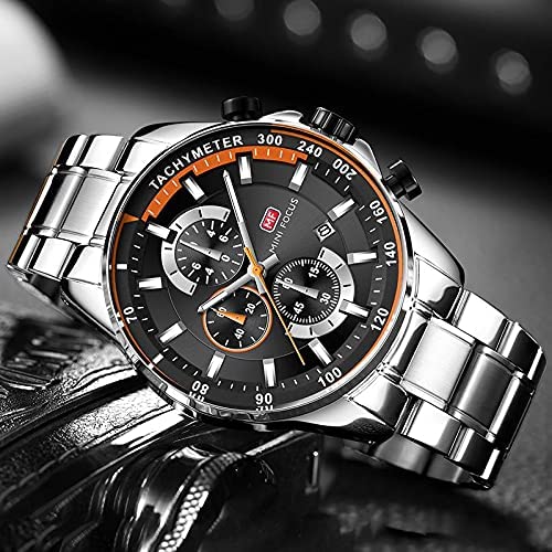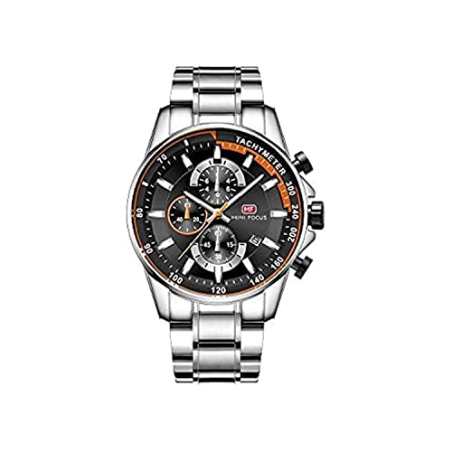 MF MINI FOCUS - ميني فوكس ساعات كوارتز من الستانلس ستيل للرجال، بمينا أسود