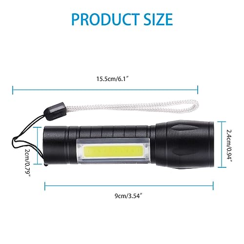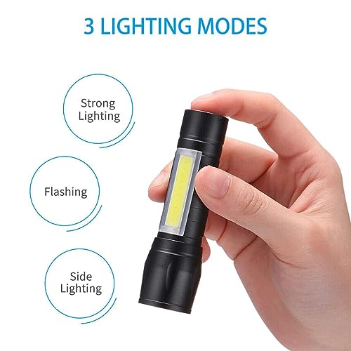 Generic - مصباح يدوي LED صغير قابل لإعادة الشحن بـ 3 أوضاع مع مصباح سي او بي جانبي