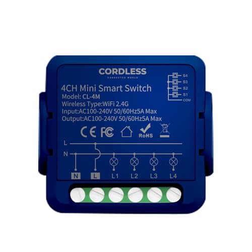 • تحكم لاسلكي: تتيح لك وحدة تبديل واي فاي 4 خطوط التحكم في الأضواء والمراوح والأجهزة الأخرى عن بعد من خلال هاتفك الذكي أو الأوامر الصوتية باستخدام مساعد جوجل وأمازون اليكسا.